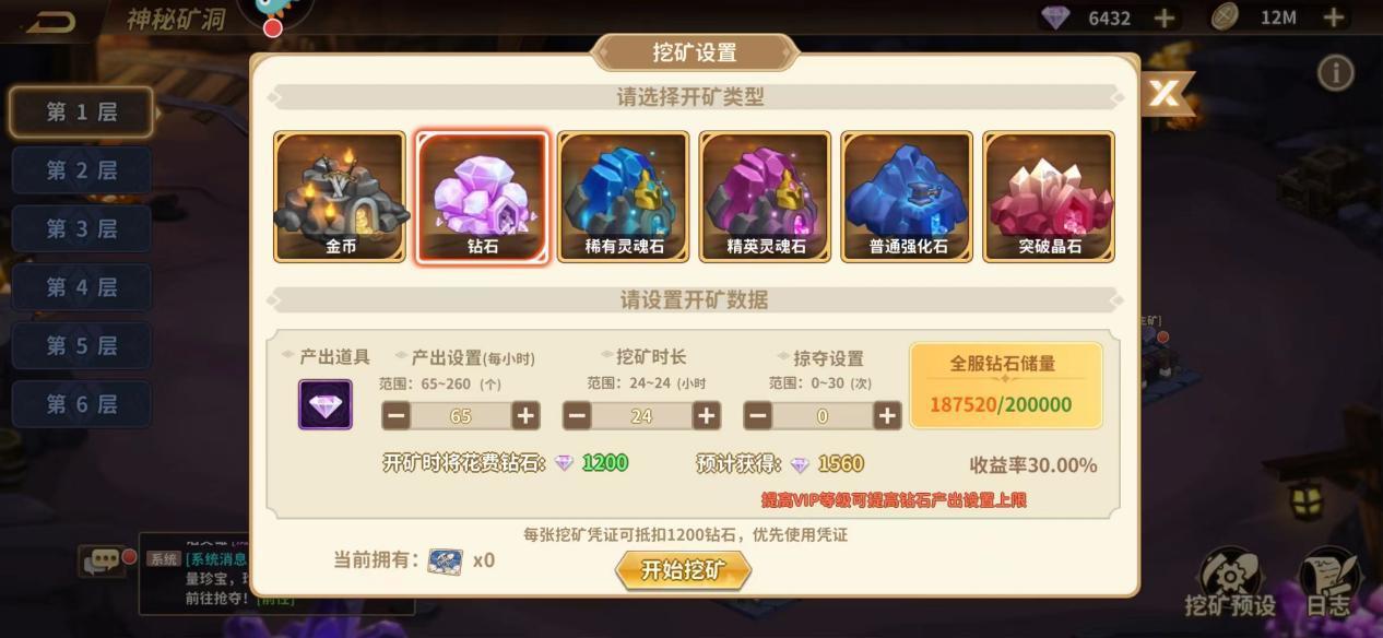 玩家们可以在游戏中用钻石来挖取钻石,玩家可以设置不被掠夺来保证固定的钻石收益;也可以设置可掠夺,一旦被其他玩家多次掠夺成功,本次挖钻可能就会亏本,但如果他们掠夺失败,对方则需支付钻石赔偿,而玩家就能获得更高的钻石收益。