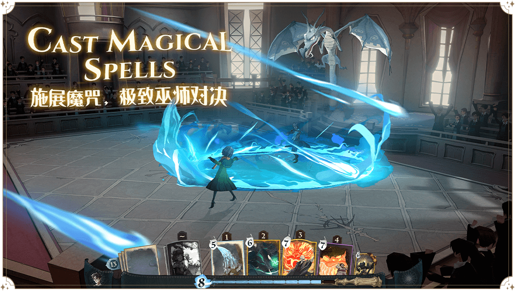 玩家通过收集卡牌,组合各种魔法与神奇生物,设计出属于自己的独一无二的王牌套牌。玩家通过施展魔法咒语,召唤同伴强强联合,一起共同击败对方巫师取得胜利。