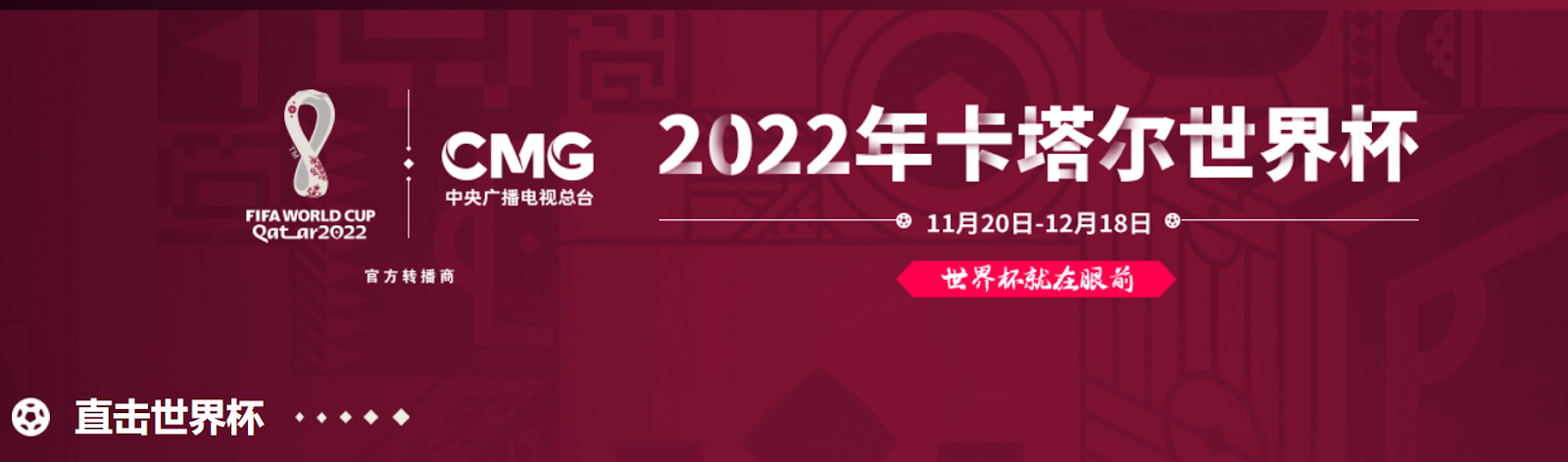 11月20日至12月18日,中央广播电视总台作为官方直播商将将对所有赛事进行免费直播,只需在网上进入央视频的页面,选择体育频道,即可看到世界杯专题页面。