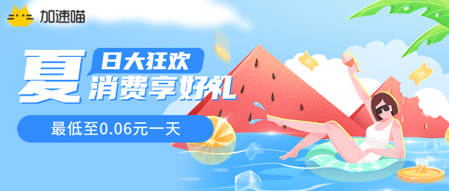 为了感谢海外的朋友们对加速喵的支持和喜爱,加速喵特意安排了此次的夏日活动,希望能继续帮助到海外的华人和留学生实现回国网络自由。