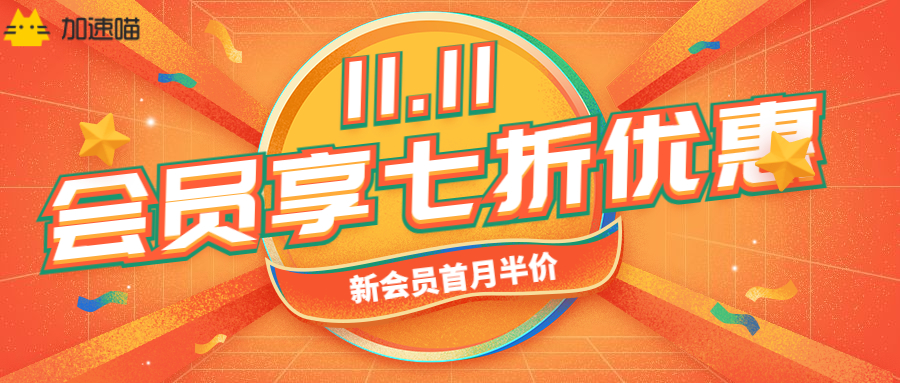 加速喵限时双11优惠,新会员首月半价,会员下单即享7折|海外华人必备的回国游戏加速器