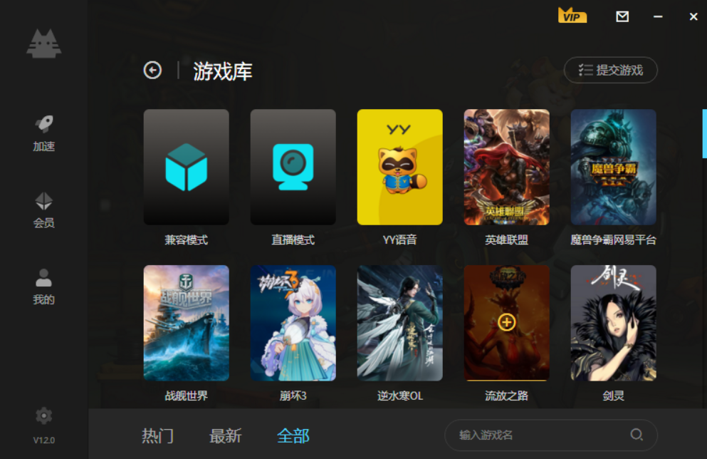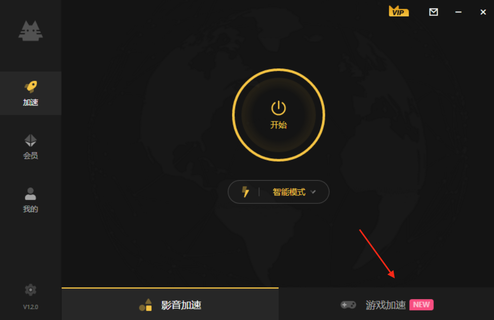1、新用户打开加速喵后,点击右下角的游戏加速。