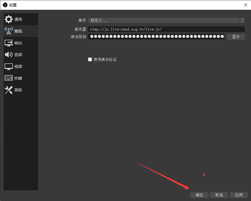 然后粘贴到OBS的服务里面