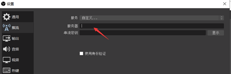 在服务区选择自定义,我们把开播页面的rtmp地址复制到服务里面