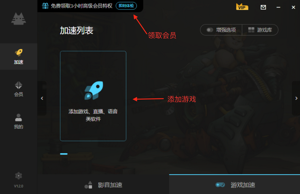 2、新用户可先领取3小时高级会员进行试用。