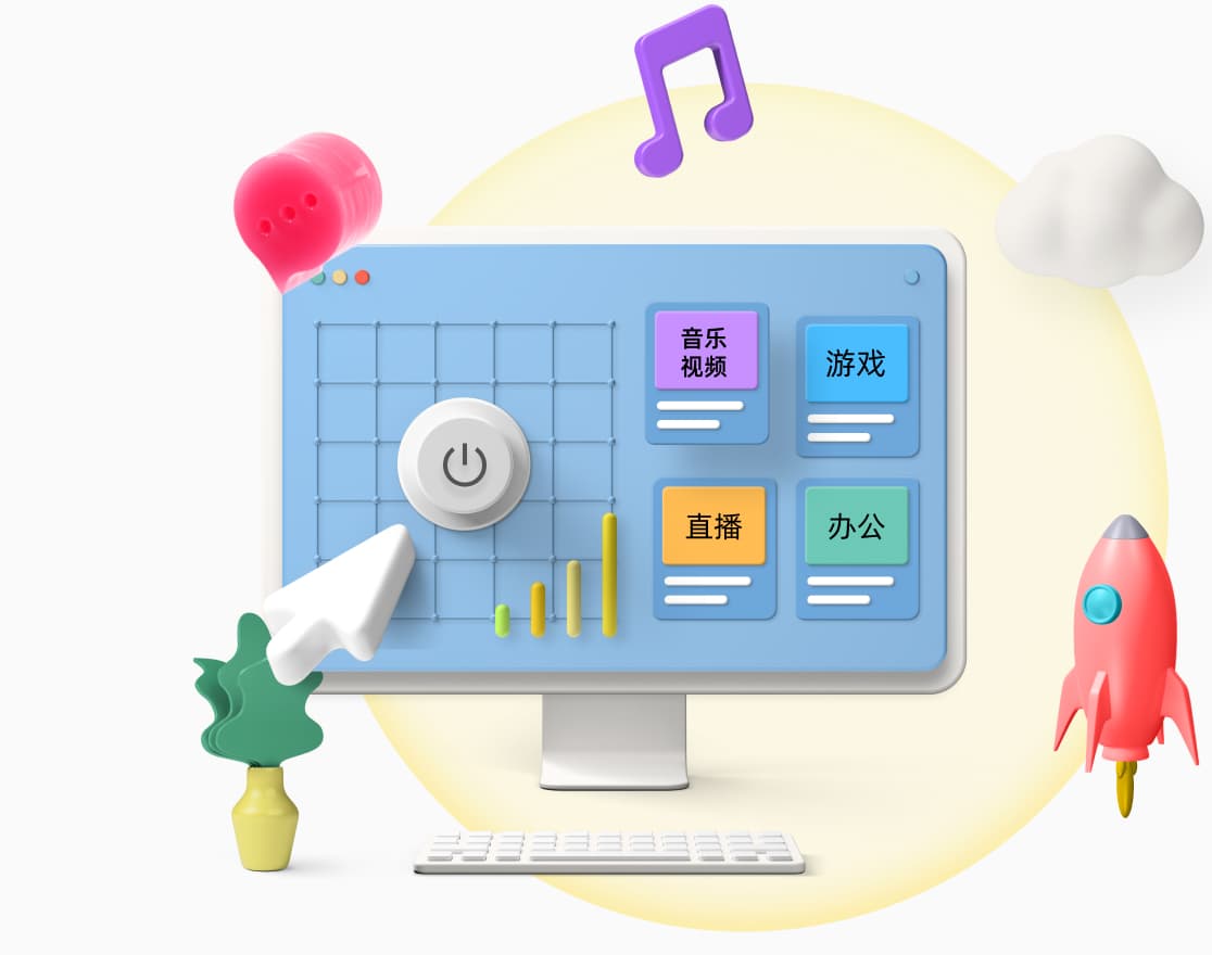 加速喵可同时加速回国音视频,满足您各种回国场景,玩游戏的同时还能支持YY语音、听音乐或者是直播等。加速喵游戏加速模式支持Windows、Android、iOS多平台同时使用,最多支持3台设备,随时随地畅享游戏加速。
