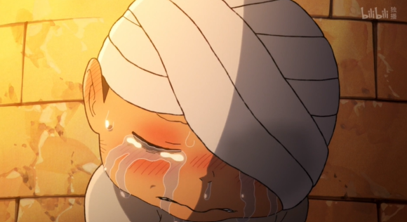重伤后偷偷练剑的波吉在得到唯一的朋友卡克的肯定和鼓励后,不再隐藏自己的情绪终于忍不住放声大哭。