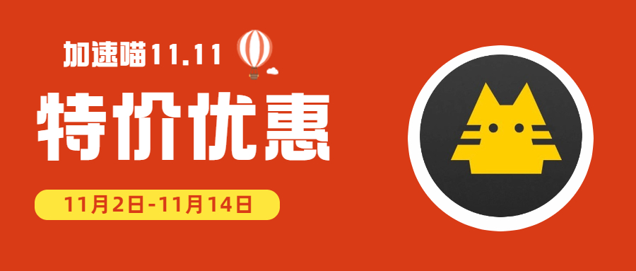 点击 miaovpn.com/,会员在加速喵双十一特惠期间下单即享七折优惠,新会员首月半价,每天仅需付五毛钱,优惠价还有四天到期,错过就没了,赶紧下单吧。