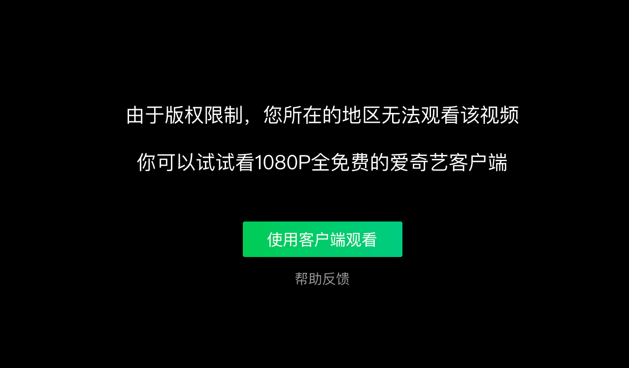 打开爱奇艺、腾讯、哔哩哔哩,显示地区限制无法观看。