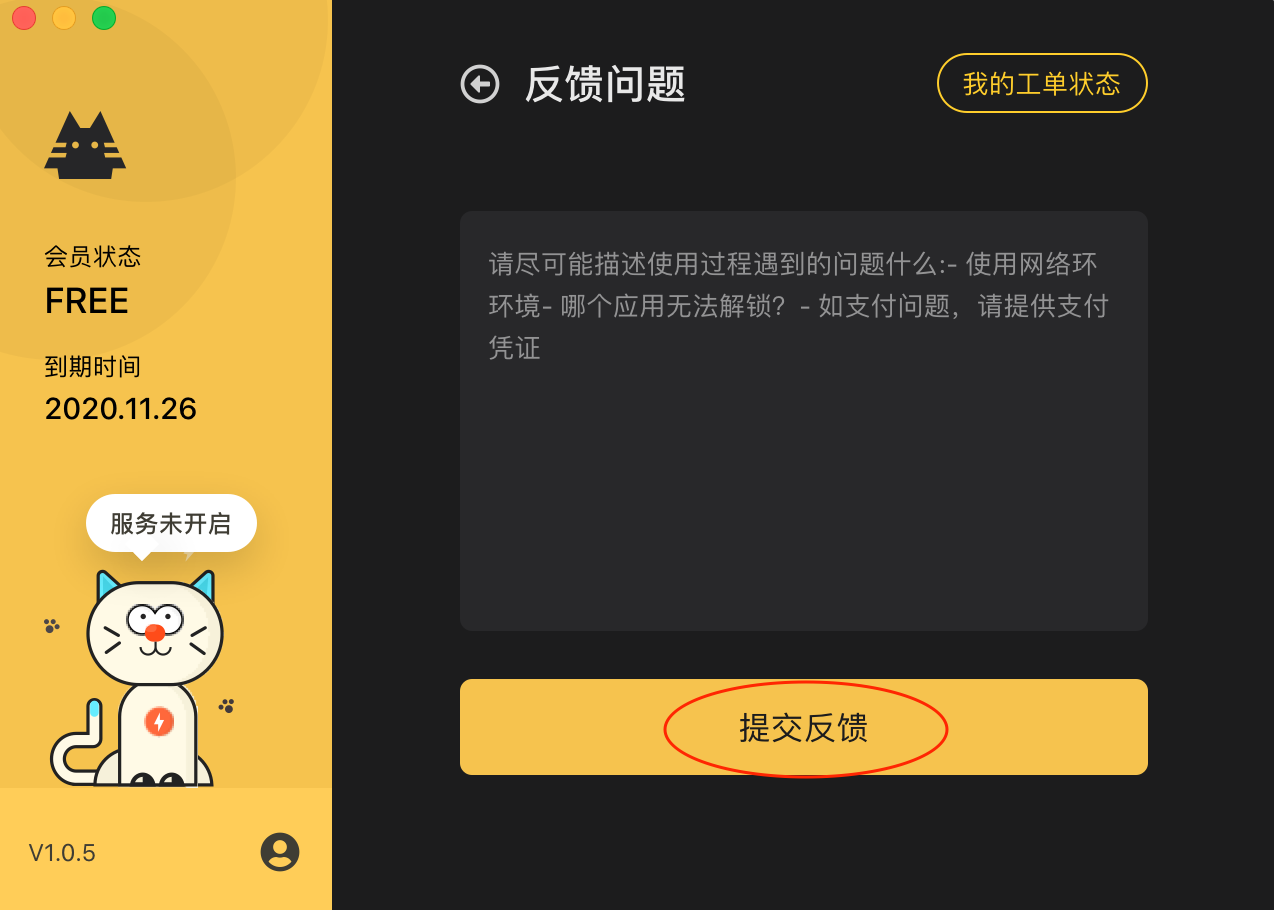 3、描述你遇到的问题后,点击【提交反馈】即可。